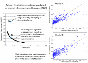 Satellite-derived maps of forest conditions play diverse roles in research and resource management. Maps provide a basis for planning and executing field studies, developing and calibrating models, quantifying ecosystem processes or services, and evaluating environmental change. Natural resource managers use maps to characterize resource conditions, project changes, and direct management actions. However, inferences and decisions must be made within the context of map error, and methods used to produce maps generally result in patterns of error that are potentially detrimental. The researcher has developed machine learning techniques that effectively reduce undesirable systematic error when mapping forest attributes from satellite imagery and geospatial data. The approach is based on support vector machines using a multi-objective genetic algorithm (GA) designed to simultaneously minimize both total and systematic error. Using this approach, we have mapped tree species abundance and forest disturbance across northern Maine, obtaining outcomes that compare well against other approaches previously applied either regionally or nationally. Our algorithms are, however, computationally demanding, and large-scale applications will require more effective use of computing resources. The purpose of this project is to develop software that enables statewide and regional application of our algorithms through enhanced parallelization and new approaches to coordinate and accelerate the convergence of GAs operating across multiple, geographically distributed problem sets defined by input spatial data. We will specifically develop techniques for sharing prospective solutions between GAs executing on adjacent spatial data tiles, mimicking migration of individuals between locally adaptive subpopulations. Algorithm improvements will be coupled with more efficient and more automated methods for input and output data handling. The primary project outcome will be software that supports locally adaptive mapping of forest resources and environmental conditions across large spatial scales through innovative algorithms and efficient use of available cyberinfrastructure.